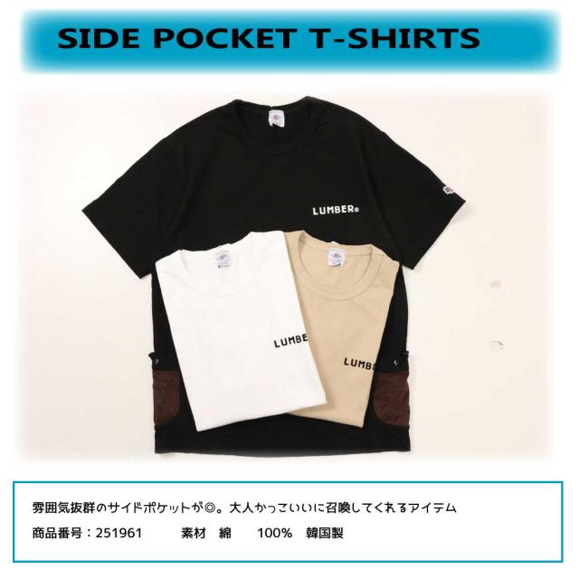 LUMBER ランバー 半袖 Tシャツ SIDE POCKET T-SHIRTS サイドポケット ロゴ ワンポイント プリントTシャツ 251961 メンズ クルーネック カジュアル