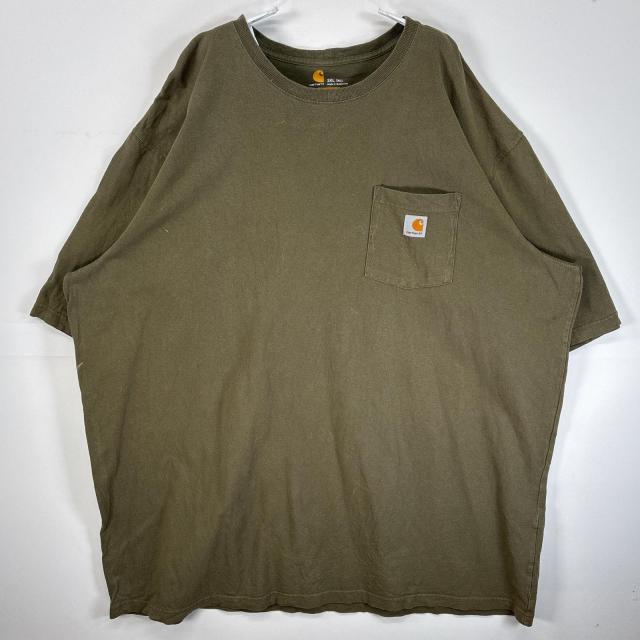 古着 カーハート Carhartt 半袖Tシャツ ワンポイント ロゴ 大きいサイズ ワンポイント ロゴ 3XL TALL カーキ 無地 メンズ