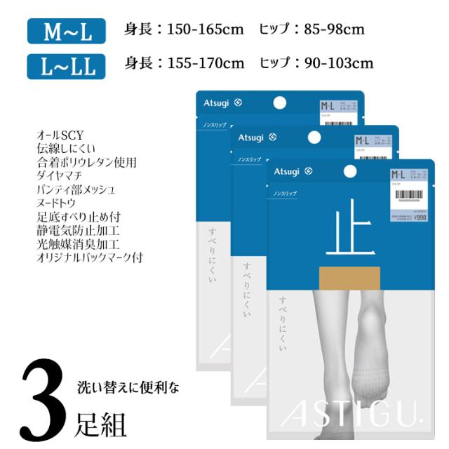 ストッキング アツギ アスティーグ 止 AP9012 3足組 送料無料 すべり止め付き 滑り止め パンティストッキング アツギストッキング つま先切り替えなし通気性 蒸れない ムレにくい astigu atsugi(06678)