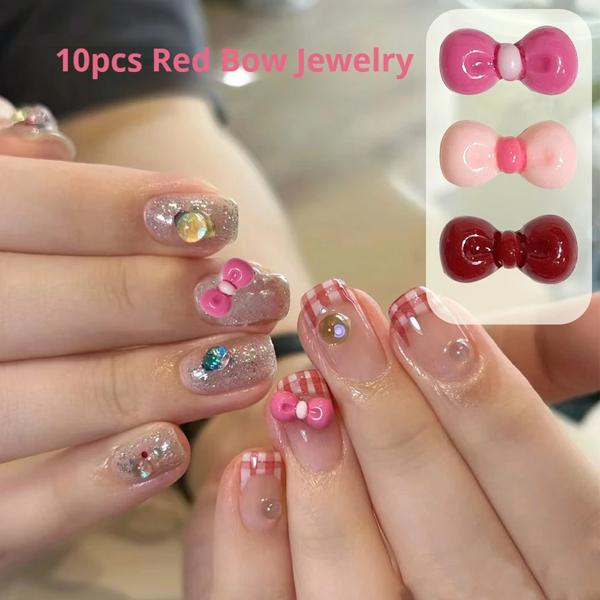 10/50/100 個 3D 漫画猫ちょう結びネクタイネイルアートチャームピンク/レッド樹脂弓爪装飾 Y2K かわいい女の子 DIY マニキュアパーツ