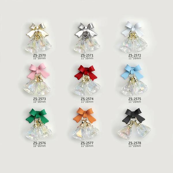 10 個クリスマスベルジルコンクリスタル弓ラインストーンネイルダイヤモンド 3D チャーム装飾ジュエリー高級ネイルパーツマニキュア