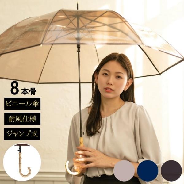 傘 ビニール傘 手元 竹 バンブー ハンドル 8本骨 ジャンプ傘 ワンタッチ レディース メンズ 男性 紳士 婦人 女性 お礼 楽天 母の日 プレゼント