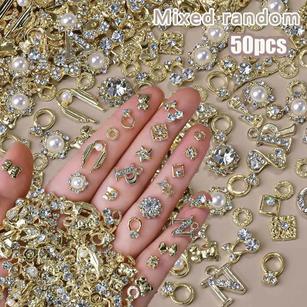 50 個 Y2K 混合スタイルジュエリーパーツラインストーン宝石ランダム高級 3D ゴールド合金ネイルアートチャームマニキュア DIY ネイル Decorati
