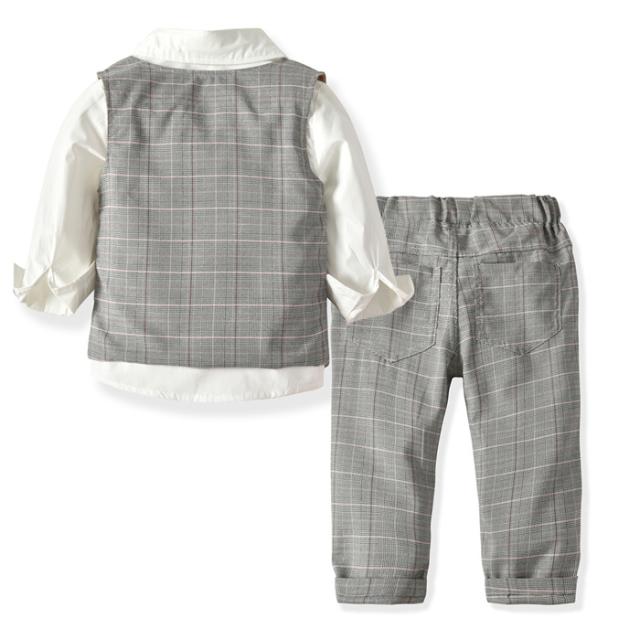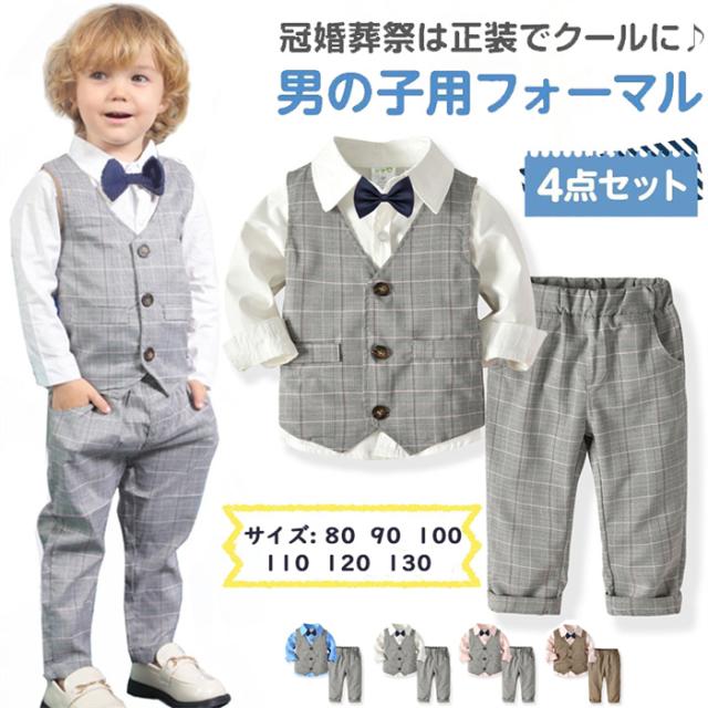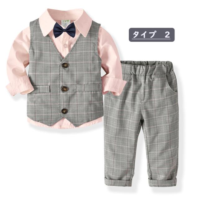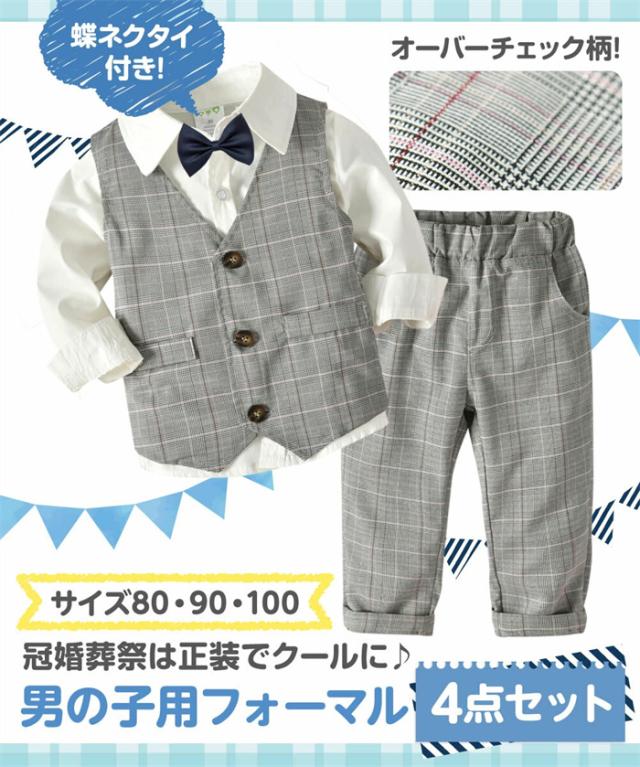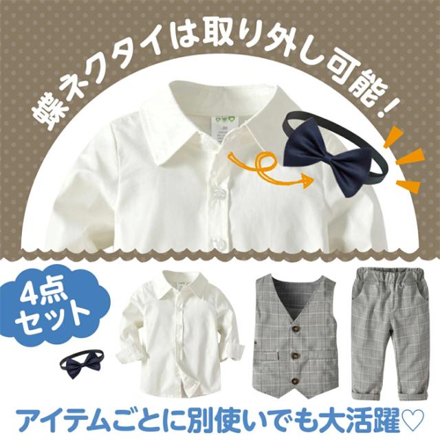 結婚式や入園式などにおすすめ!蝶ネクタイとベストでフォーマル風の正統派の長袖カバーオール!