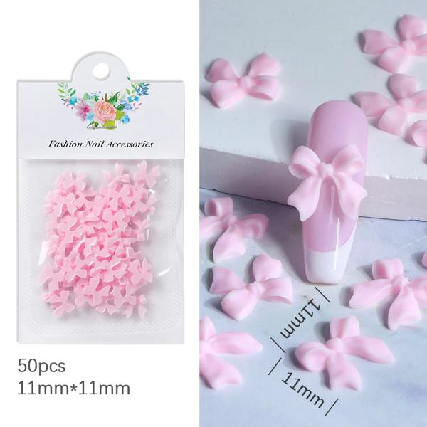 50 ピース/バッグピンク白リボン弓ネイルチャーム韓国赤パーツネイルアートネクタイ装飾かわいいアクセサリーマニキュアデザイン用品