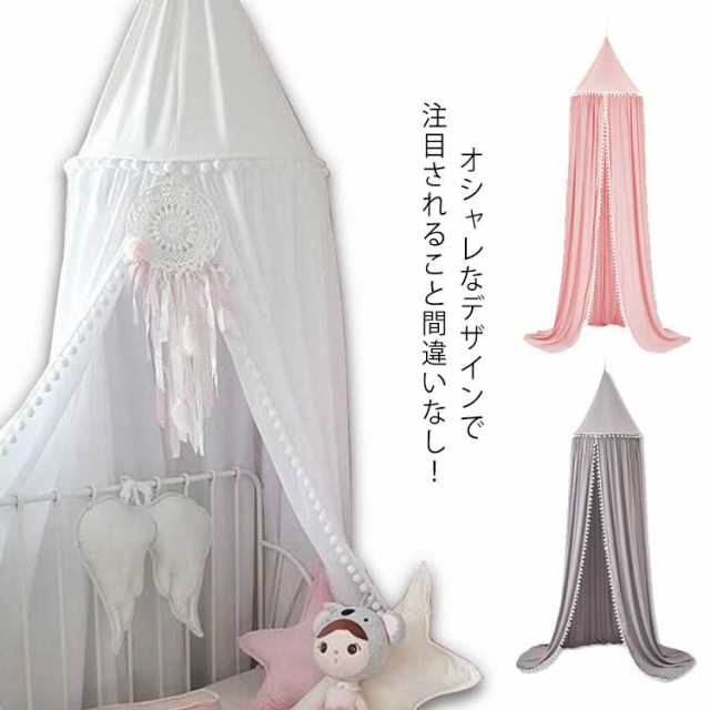 子供蚊帳 スリーピングカーテン 蚊帳天蓋 キャノピー インテリア 北欧 子供ルーム 部屋飾り 蚊対策 飾り ボンボン 可愛い ピンク ホワイト グレー
