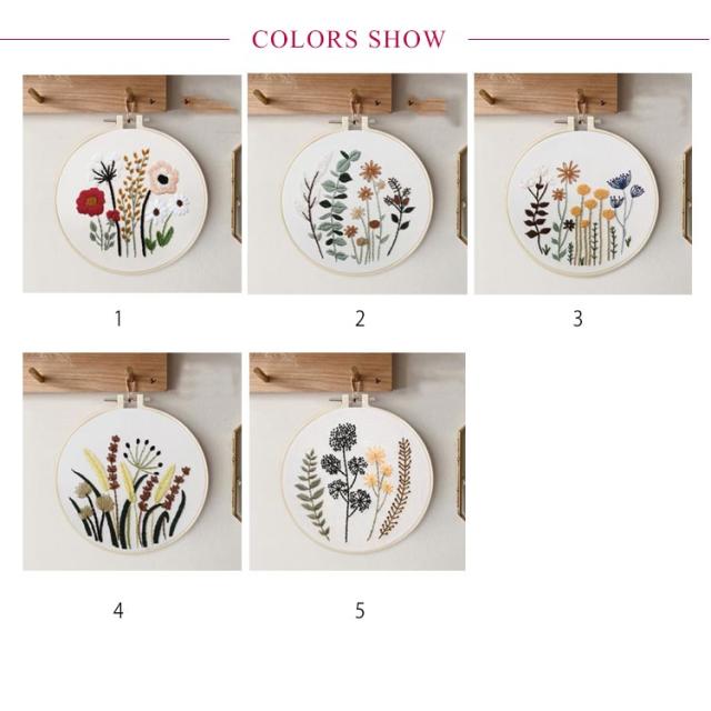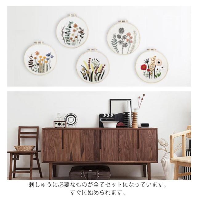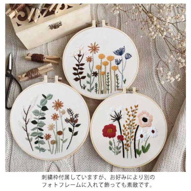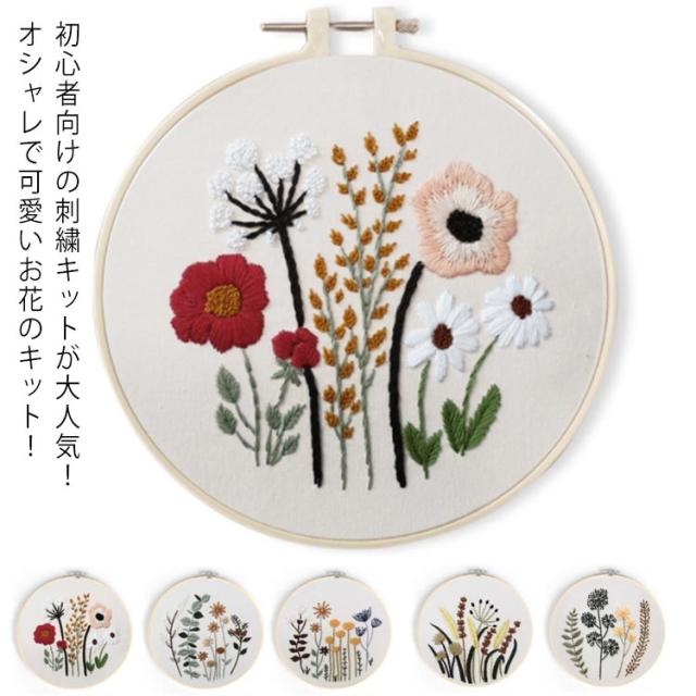 刺繍キット 花 刺しゅうキット 刺繍枠 刺繍糸 材料セット 植物刺繍キット 基本ステッチ DIY ハンドメイド 初心者向け 手芸 全5種類