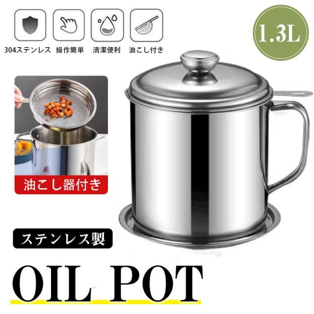 即納 ステンレス製 オイルポット 1.3L 小さめ コンパクト 安い キッチン おしゃれ オイルポッド 揚げ物 油 フライ 天ぷら 再利用 唐揚げ 料理 キッチン用品 大容量 母の日 プレゼント 敬老の日 プレゼント