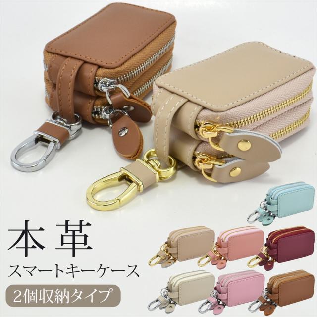 本革 スマートキーケース キーケース レザー ダブルファスナー 2個 2つ 収納 キーリング 車キーケース スマートドア ファスナー ダブルジッパー スマートキーカバー 鍵 本皮 皮 革 車のカギ 家の鍵 トヨタ ホンダ 日産 スズキ ダイハツ マツダ スバル 三菱