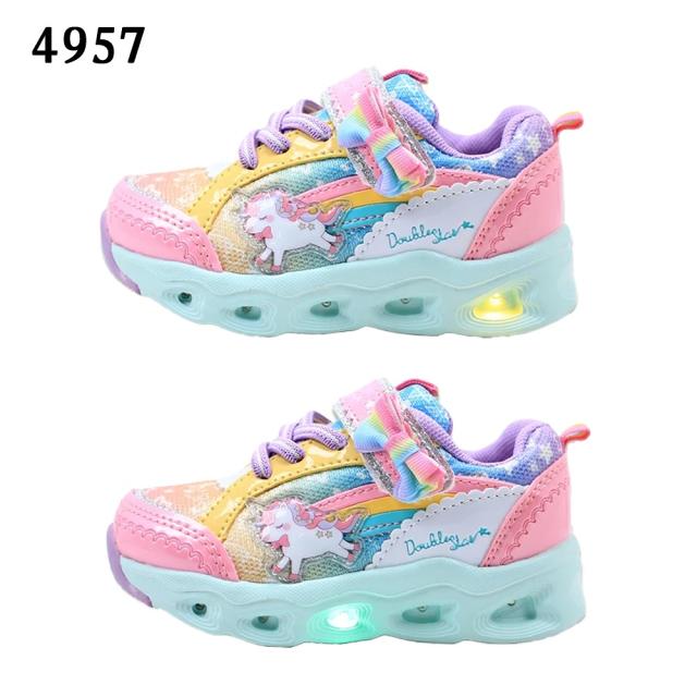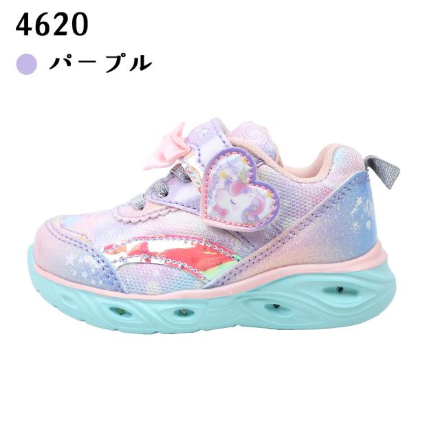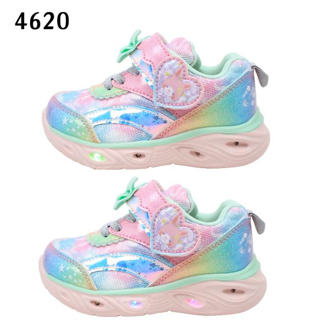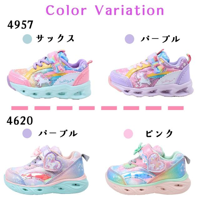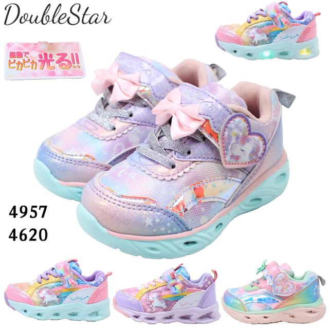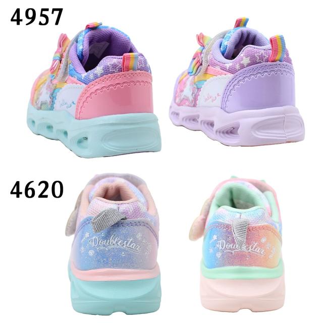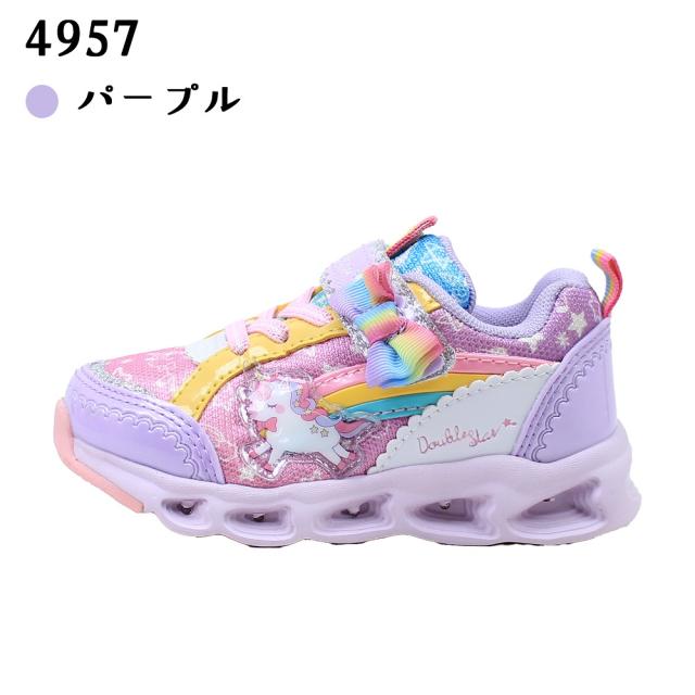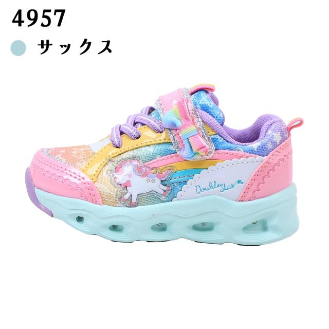 光る靴 ダブルスター キッズ 子供靴 スニーカー フラッシュシューズ 4957 4620 光る ユニコーン うさぎ マジックテープ リボン サックス ピンク パープル 紫 DOUBLE STAR