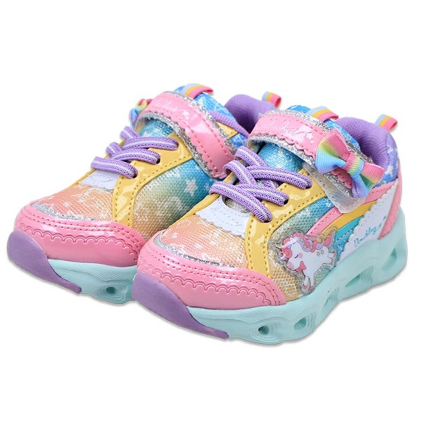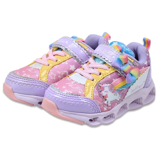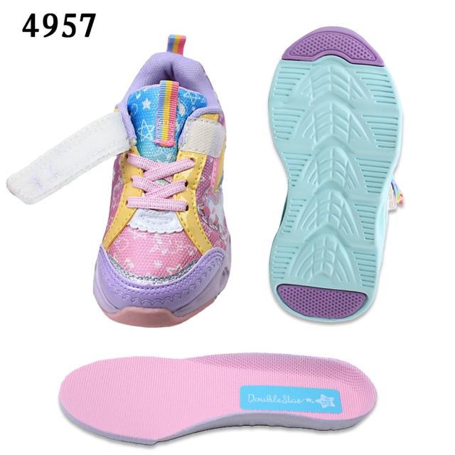 光る靴 ダブルスター キッズ 子供靴 スニーカー フラッシュシューズ 4957 4620 光る ユニコーン うさぎ マジックテープ リボン サックス ピンク パープル 紫 DOUBLE STAR 【子供・キッズ】