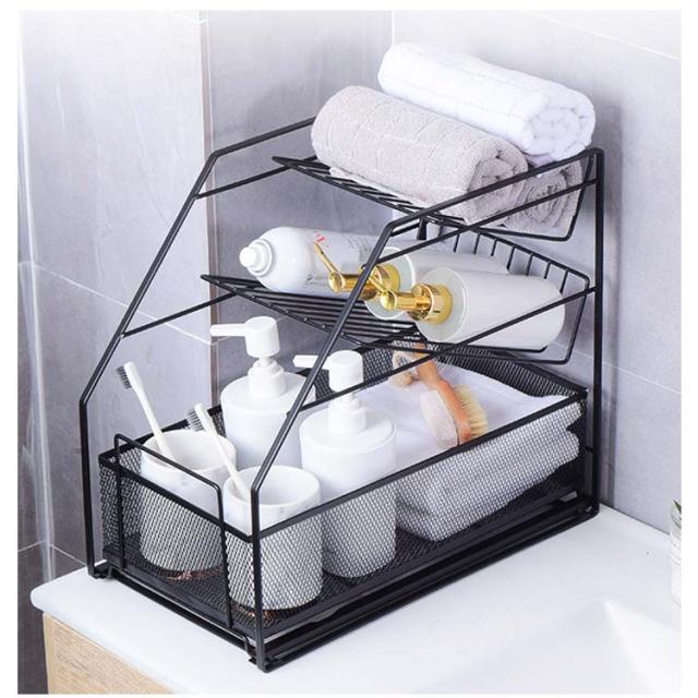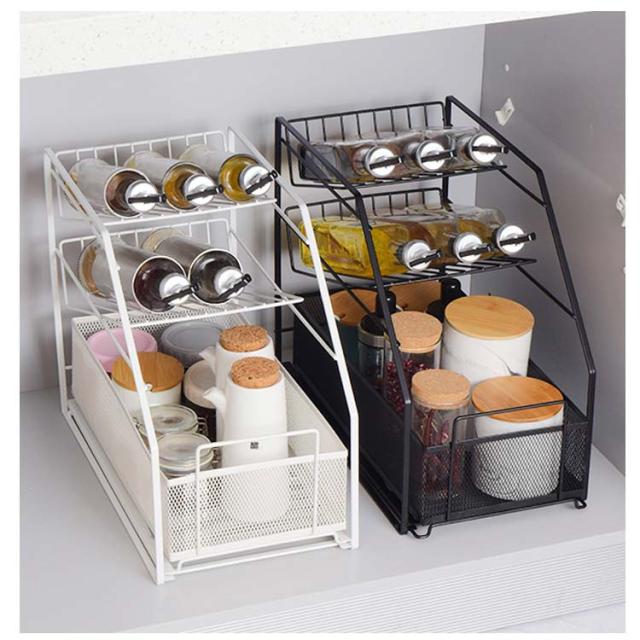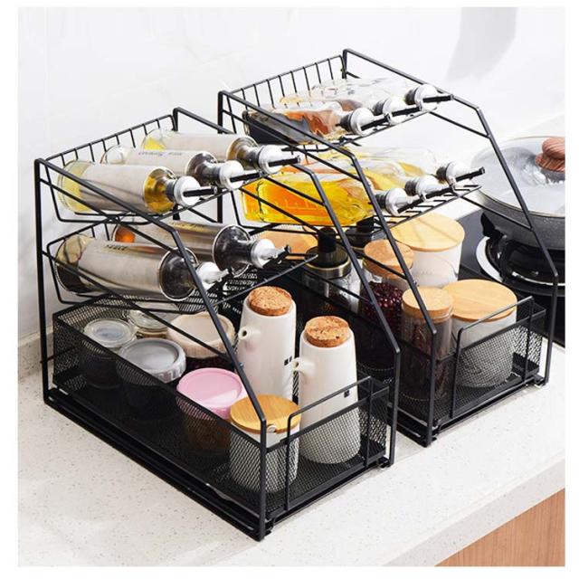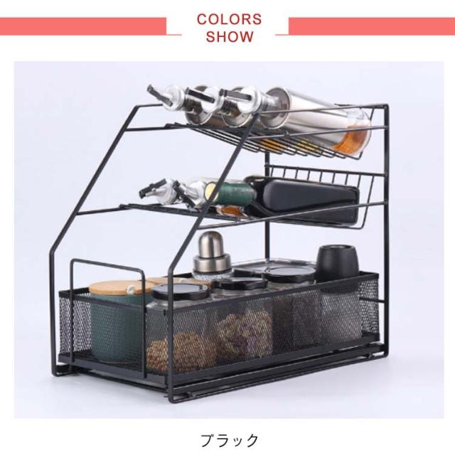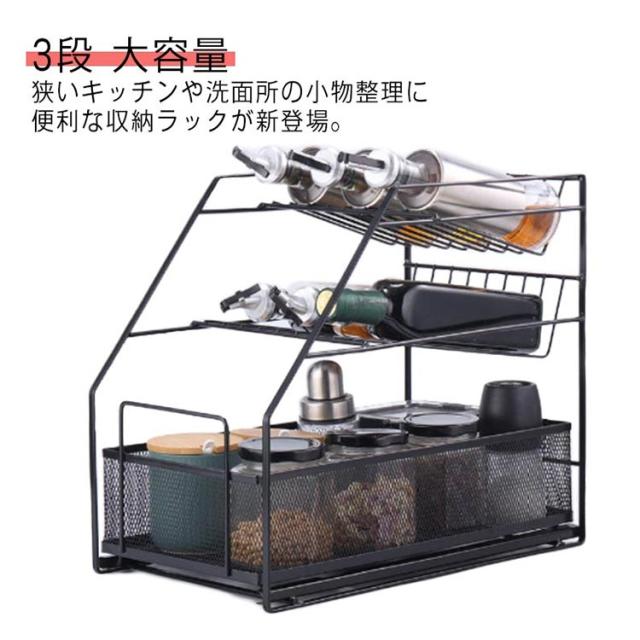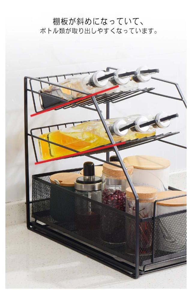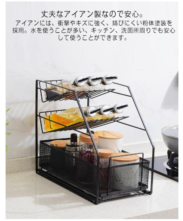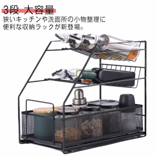 収納 卓上ラック コンパクト シンク下 調味料ラック 引き出し 大容量 洗面所 3段 傾斜ラック 調味料収納 すきま収納 スリム キッチンラック ラック キッチン スライド スパイスラック タオル 化粧品 小物収納 調味料ラック 収納 隙間ラック シンプル おしゃれ アイアン