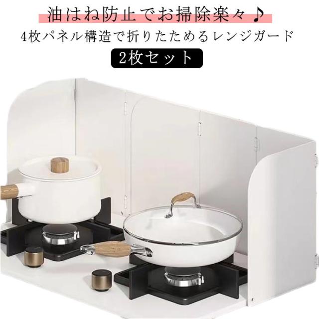 コンパクト 【2枚セット】 4面 油はねガード 折りたたみ 使うときだけ 耐熱 レンジガード IH 油はね コンロ 油よけ ガスコンロ ガード 4枚パネル 食洗機対応 洗える 排気口カバー 壁 コンロカバー レンジカバー