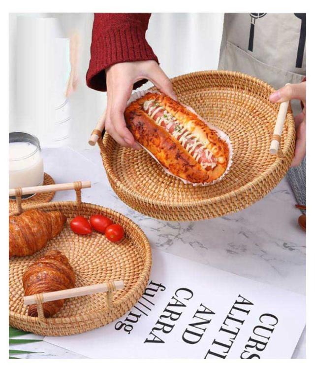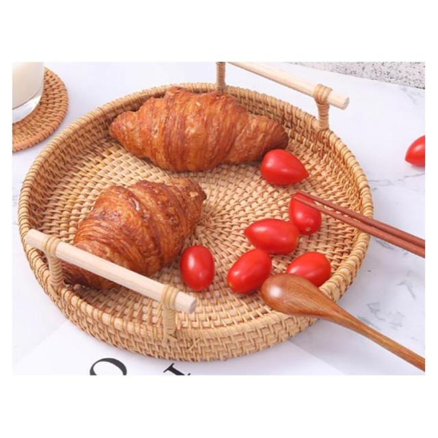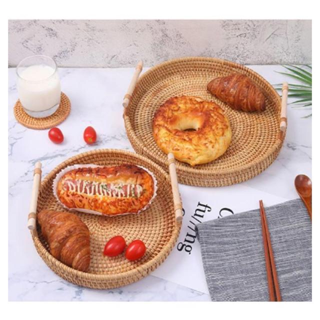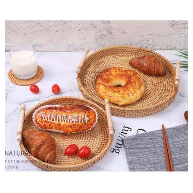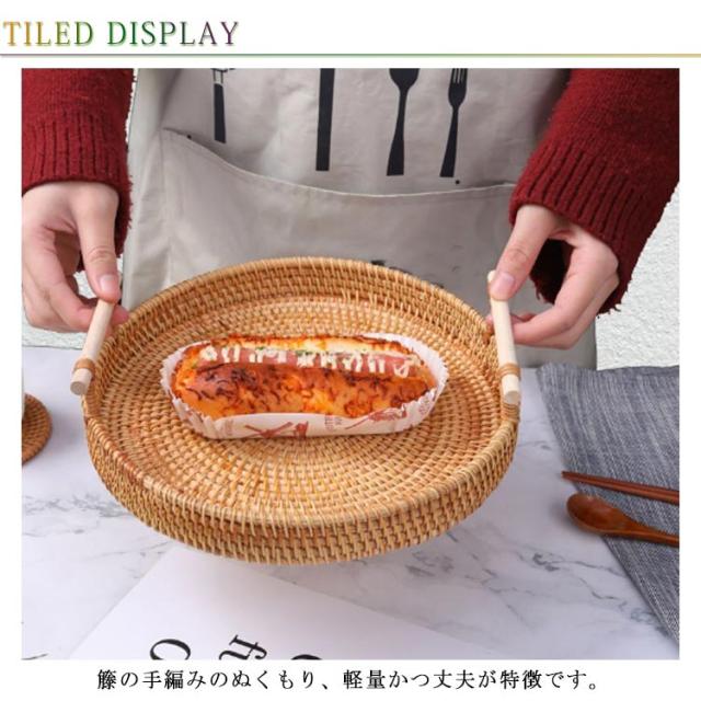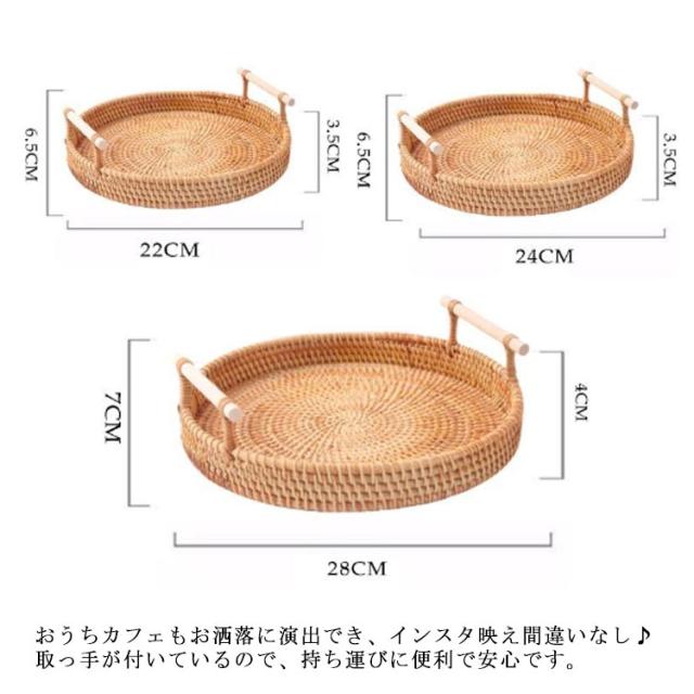 ケーキスタンド 籐かご バスケット トレー トレイ 28cm かご ケーキドーム ケーキプレート 丸型 おぼん フルーツプレート デザート スナック ケーキ 果物収納 お盆 キッチン用品 おしゃれ 食器 北欧 天然籐編 籐バスケット22cm 24cm