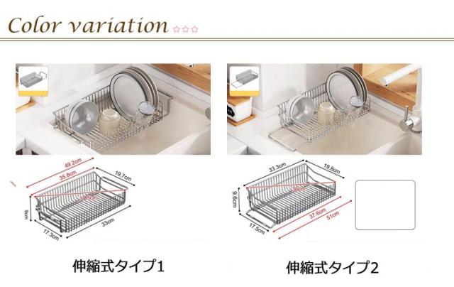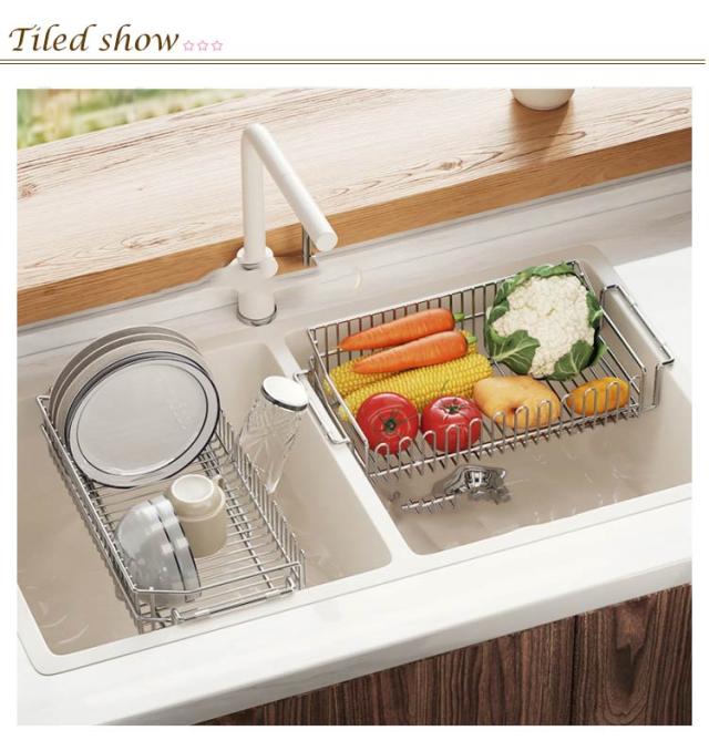 | 304ステンレスの伸縮式水切りトレー。 シンクの必要な長さまで伸縮し、キッチンシンクの様々なニーズに合わせて、しっかりと配置できます。 手すり付きは40cm<縦横<48.5cmの水槽に適しています。手すりなしは51cm以内の水槽に適しています。 滑り止めのシリコンマットはソケットの表面を傷がつかないように保護し、滑りなくスムーズに放置できます。 高さ6cmのU型の柵デザインはコップを逆にして干して便利です。 滑らかな研磨処理でバリがなく、角が丸くて手を傷めず、安心して使えます。 キッチンの限られたスペースを広々使えるアイテムでオススメ。 | |