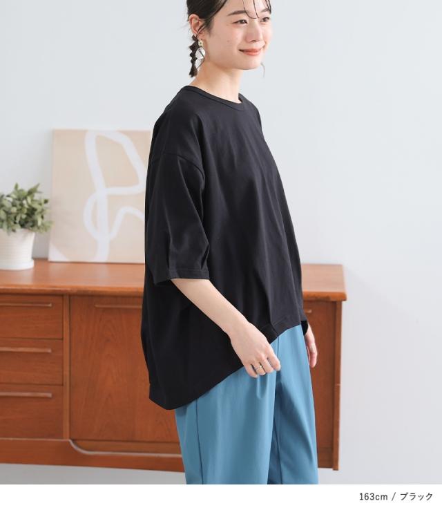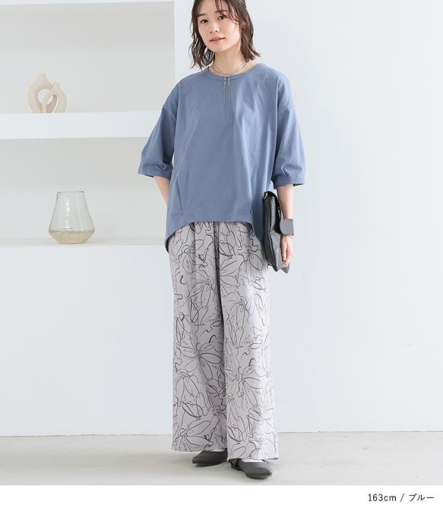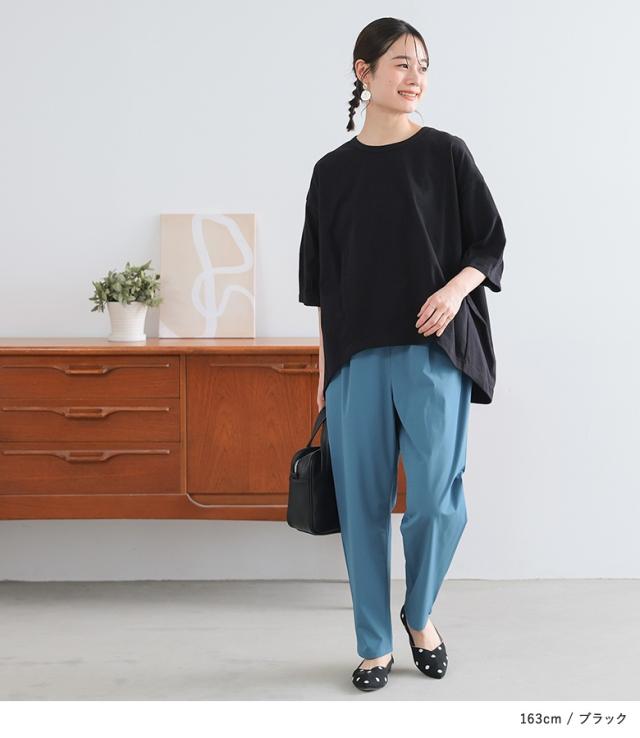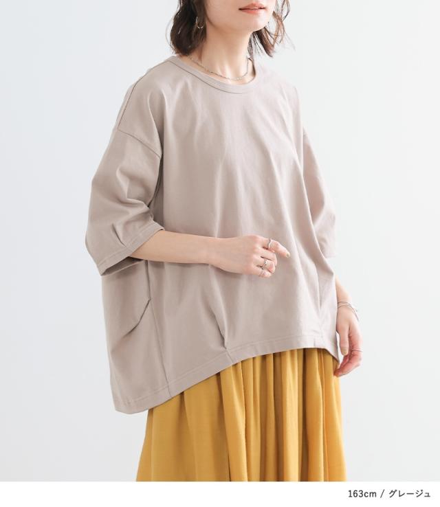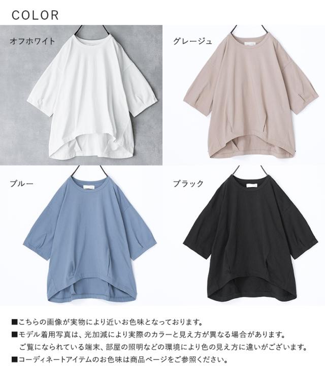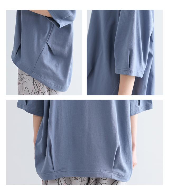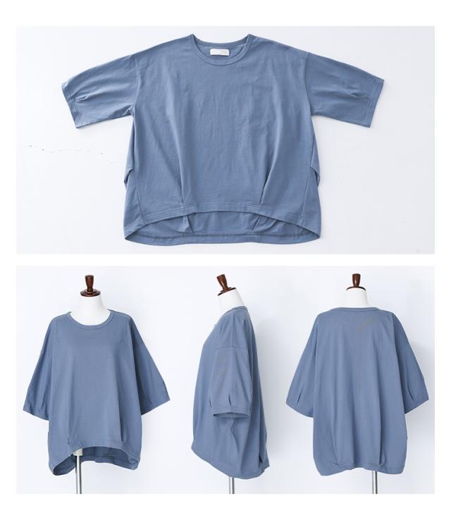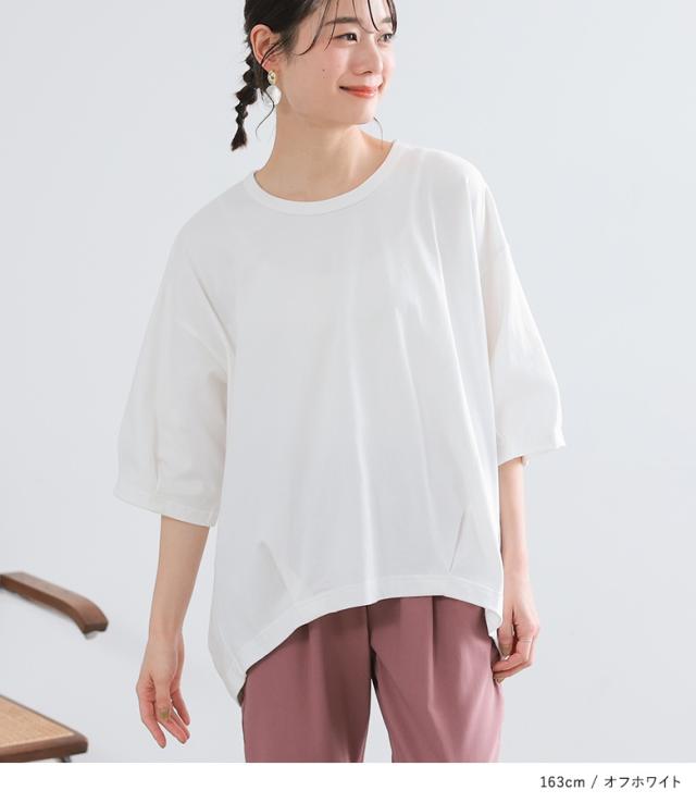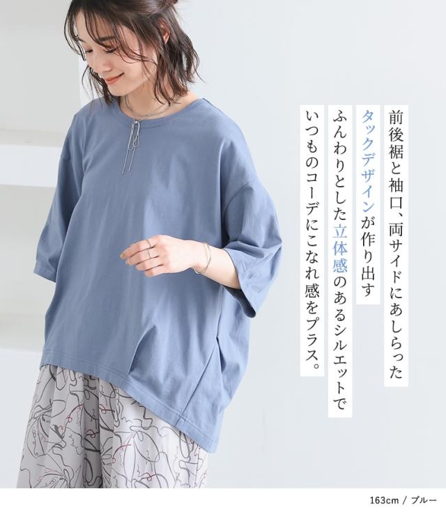 『タックデザインカットソー』※メール便可※【10】[カットソー レディース トップス 7分袖 コットン100% 綿100% 二の腕カバー 体型カバー お尻が隠れる タック 立体感 春 夏 ]