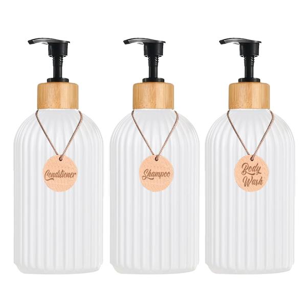 3 個のシャンプーとコンディショナーのボトルディスペンサー タグ付き マットブラック ローション ボディウォッシュディスペンサー バスルームシャワー用