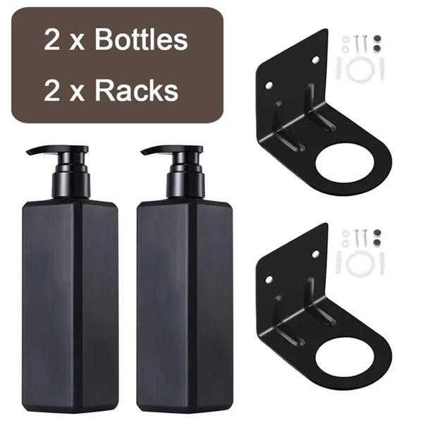 空のボトルローションシャンプー容器正方形黒ソープディスペンサー 500 ミリリットル壁掛けハンガーラック詰め替えホテル