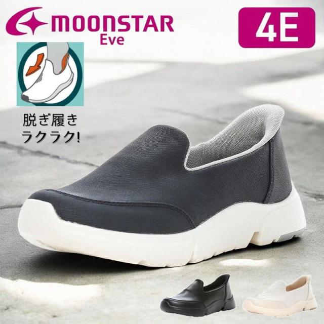 ムーンスター イブ レディース コンフォート シューズ moonstar 幅広 4E ガラス防滑 抗菌防臭 脱ぎ履き楽々 tmeve335