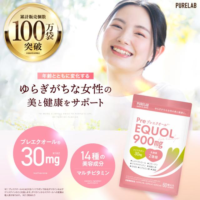 プレエクオール30mg(イソフラボン30mg)サプリメント 乳酸菌2億個 マルチビタミン エクオールサプリント 60粒 約30日分 日本製 PURELAB 送料無料 ギフト プレゼント