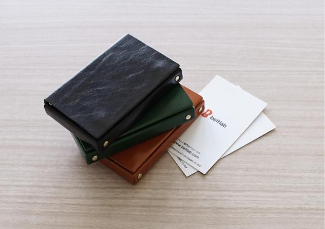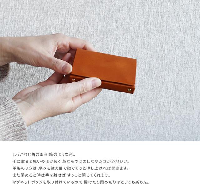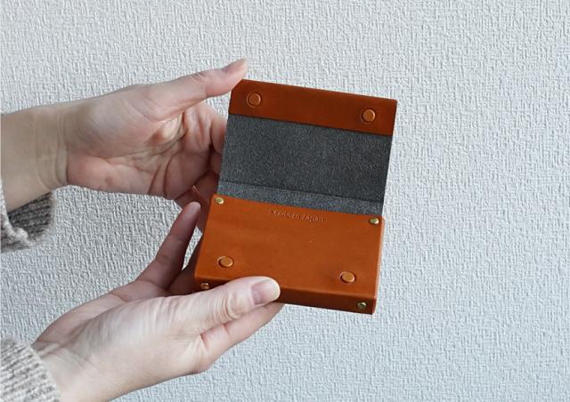 兵庫県は姫路市のタンナーさんが丁寧になめした『姫路レザー』で、四角い箱型デザインの名刺入れを作りました。
