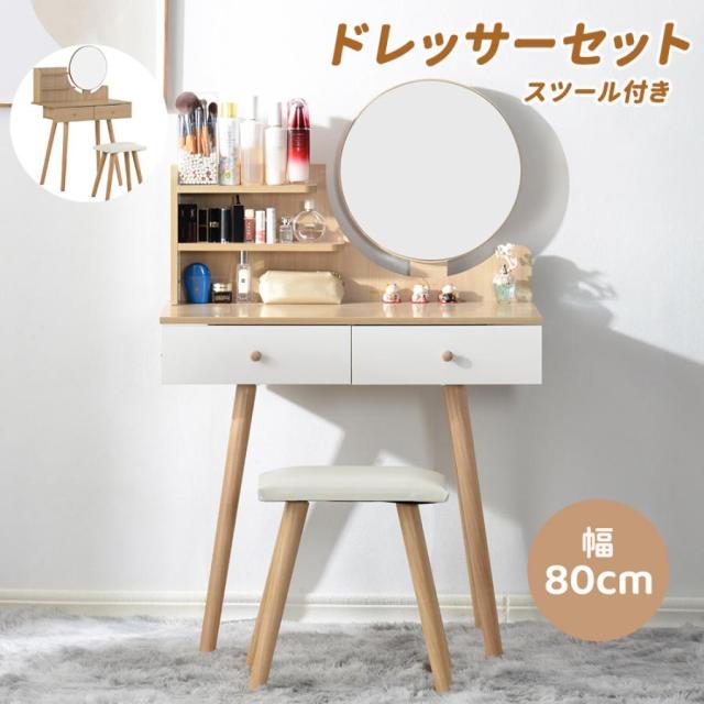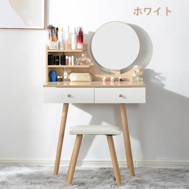 「クーポン配布中」ドレッサー 化粧台 テーブル 鏡台 ミラ付き 梳?台 ドレッサーテーブル スツール付き メイク台 メイクデスク 大容量收納 椅子付き 引き出し2つあり お姫様一人用 一人暮らし バレンタイン プレゼント