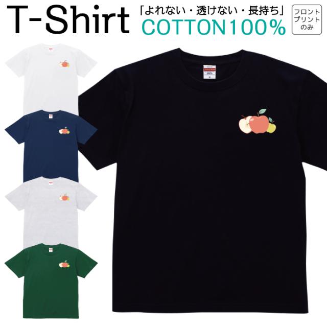 Tシャツ メンズ レディース りんご 林檎 果物 フルーツ アップル ジュニア キッズ 半袖 コットン100% 綿100% 100サイズ 120サイズ XXS XS S M L XL 5.6オンス zakka043-0648