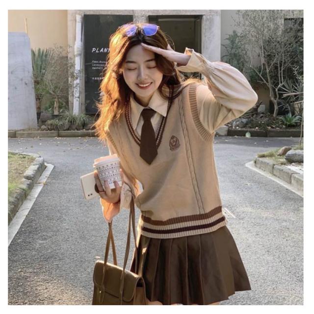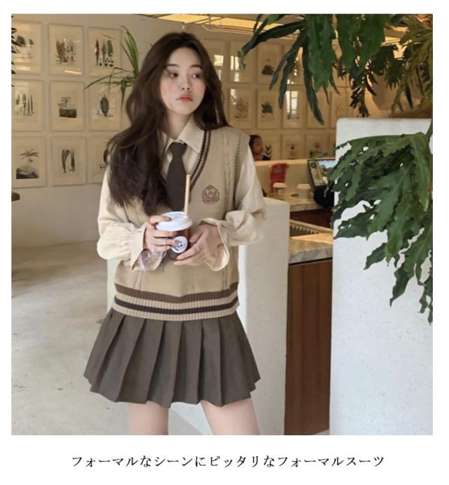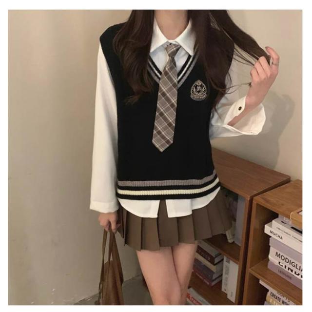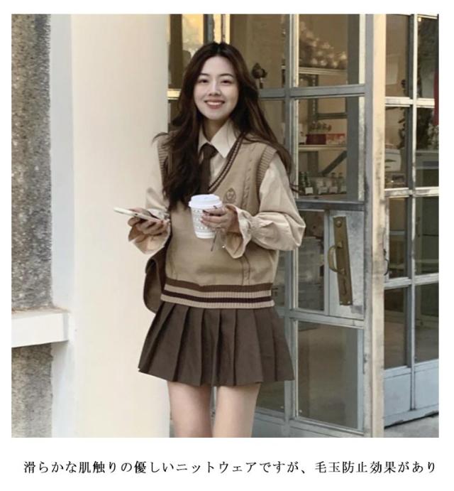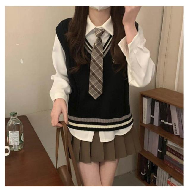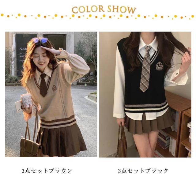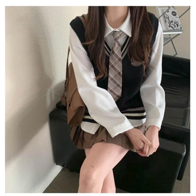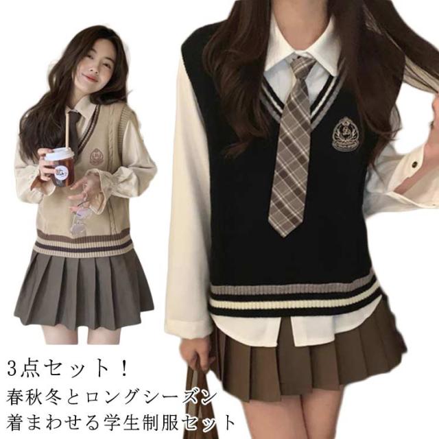 3点セット 学生 JK制服 制服 女の子 上下セット 白シャツ ライン入り ニットベスト プリーツスカート 制服 長袖 おしゃれ ネクタイ スクール 女子高校生 高校生 中学生 学生服 韓国 コスプレ衣装 コスチューム 仮装 可愛い 送料無料