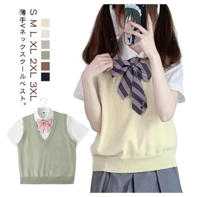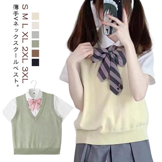 夏 スクールベスト 薄い ニットベスト 制服 無地 Vネック レディース スクール ベスト ニット セーター ノースリーブ 高校生 中学生 女子高生 JK制服 ベスト コスチューム 学生服 通学 イベント コスプレ 春夏秋 送料無料