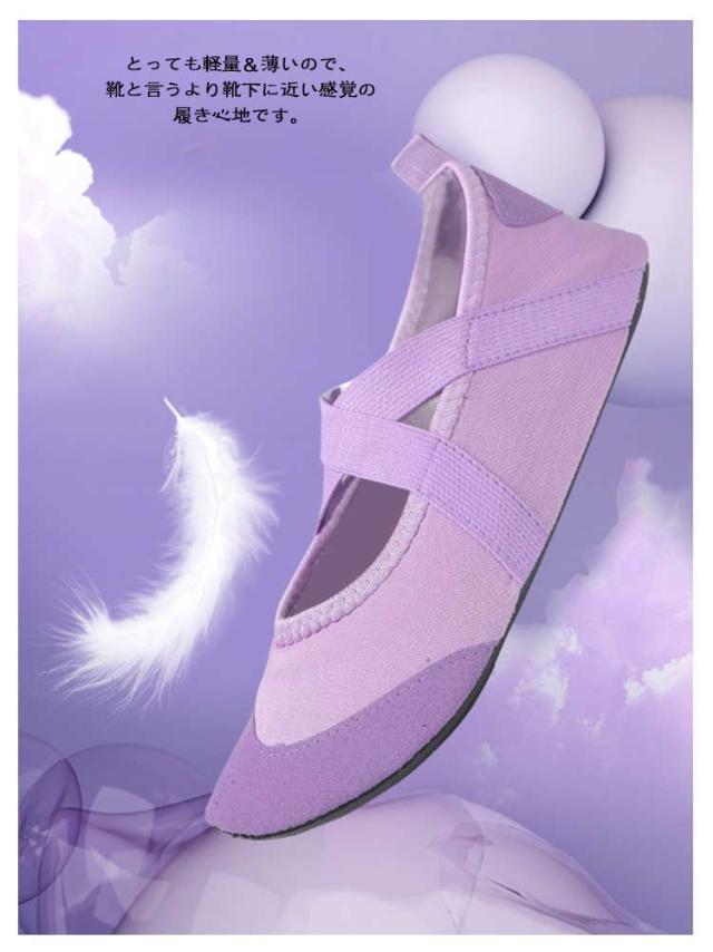 | ヨガやフィットネスに使えるシューズです♪ ヨガ・ストレッチ・トレーニング・ダンスなどに最適! 薄い!かさばらない!動きやすい!折りたたんでストレスなく携帯が可能! 仕事帰りのジムや、お家でフィットネスや旅行や出張の際の機内履き、オフィスや運転時の履き替え用としても便利なマルチで使える軽量シューズです。 とっても軽量&薄いので、靴と言うより靴下に近い感覚の履き心地です。 柔軟でストレッチが聞いているけどしっかりと足の甲・かかとなどを保護してくれます♪ 人間工学に基づいたフィット感と優しいクッション性!スポーツ、リラックス、日常生活と幅広い場面で活躍! | |