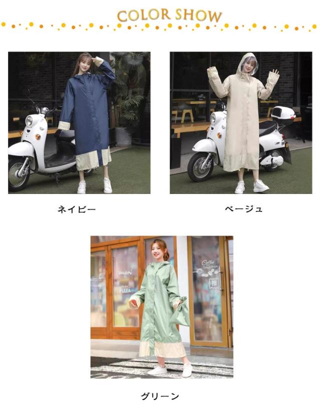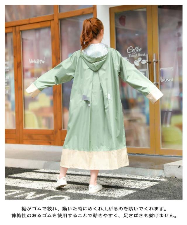 レインコート 自転車 リュック対応 自転車レインコート レディース 長め 袖口ゴム 裾にドローコード ツバ付き カッパ かっぱ 雨合羽 雨具 ポンチョ 膝が濡れない 撥水 通勤 通学用 自転車通学 レインウェア 自転車用 梅雨 秋雨 グリーン ベージュ ネイビー