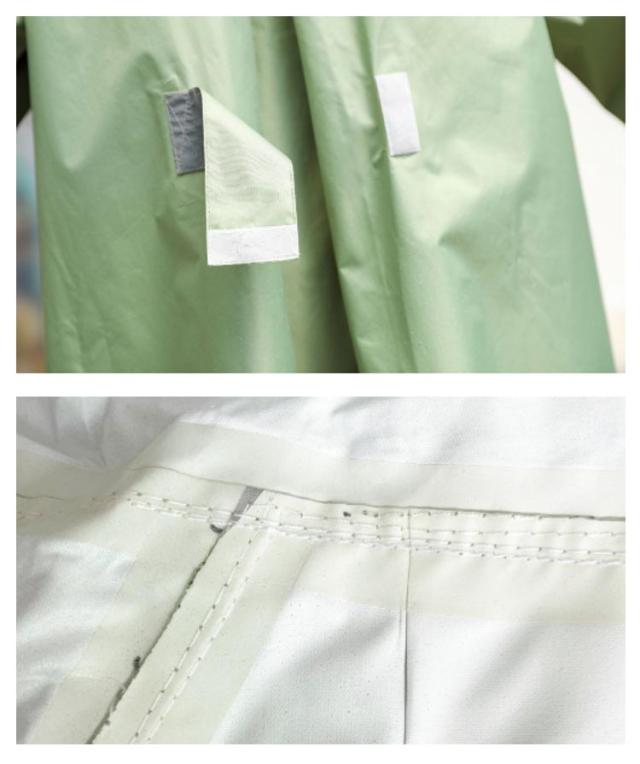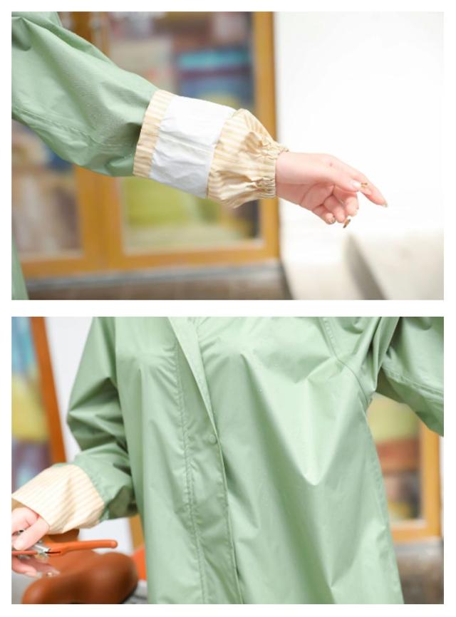 | 細部まで計算され尽くしたデザイン!正面からくる雨に挑む機能性を携えて、女性向きレインコートです。 大きめの透明ツバが雨を防ぎ、横サイドからの視界も防がない!視界を守るので傘なしで自転車に乗れます。 二重になったゴム入り袖で雨の侵入を防ぎます。さらに、大きめの袖がハンドルカバーとなり、雨から手を守ります。 裾がゴムで絞れ、動いた時にめくれ上がるのを防いでくれます。伸縮性のあるゴムを使用することで動きやすく、足さばきも妨げません。 バックスタイルの身幅調整プリーツを伸ばせば、リュックを背負ったままウェアを着れるので、いちいち荷物を下したり、レインウェアを脱ぎ着する必要がありません。雨の日のストレス軽減! また、レインウェアに適度な厚みや重量を持たせることで、風の強い日や豪雨の時に、 レインウェアが体にまとわりついたり、捲りあがるのを防ぎます。 | |