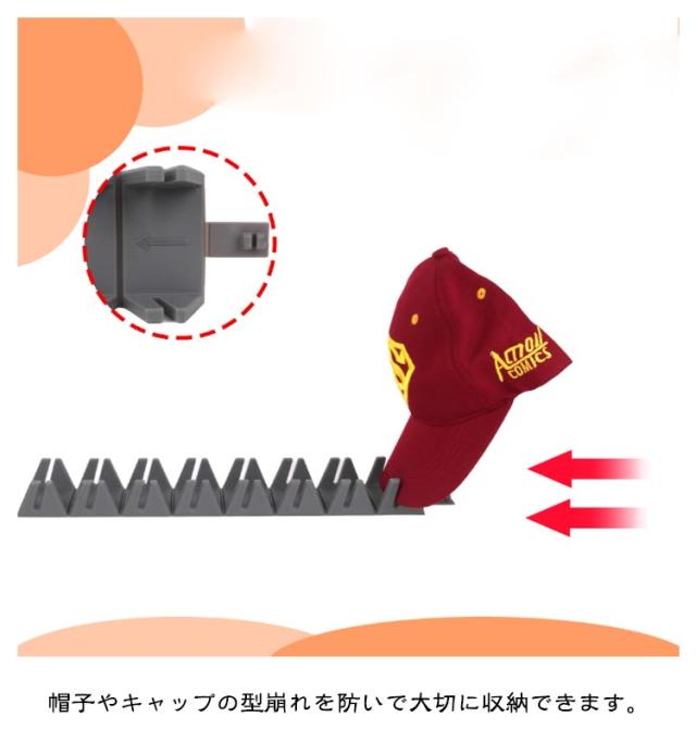 | 野球帽を収納または展示するためのホルダーラック。 コレクションの帽子を見せる収納にして、インテリアのアクセントにできます。 帽子やキャップの型崩れを防いで大切に収納できます。 折りじわをつけたくないマフラー、ストール類もハンガーにかける収納が最適です。 必要な帽子をすぐに見つけることができます。外出時の準備時間を大幅に短縮することができ、とても実用的で便利です。 | |