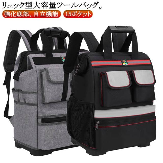 ツールバッグ 大容量 工具バッグ リュック 工具収納 工具差し入れ 自立 ツールリュック 工具リュック ワークリュック 工具かばん 修理 建設 工芸 建築 大工 電工 作業道具 大工道具 工具 収納 カバン 防水 耐久 撥水 耐摩耗 バックパック 父の日 持ち運び便利