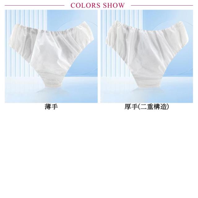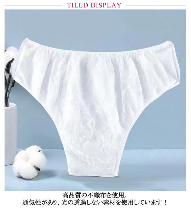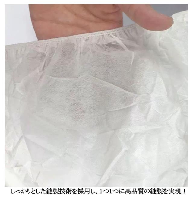 | 不織布製ペーパーショーツです。【100枚セット】【個別包装】【フリーサイズ】【薄手&厚手2タイプあり】 高品質の不織布を使用。通気性があり、光の透過しない素材を使用しています! しっかりとした縫製技術を採用し、1つ1つに高品質の縫製を実現! ストレッチの効くゴムベルト。体型に関係なく、フィットするゴムベルトを使用。 個別包装は衛生的です。 | |