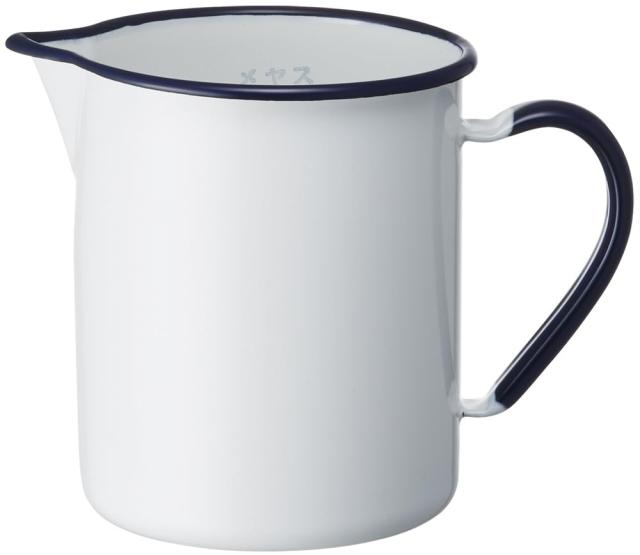 野田琺瑯(Nodahoro) ビーカー ホーロー 耐熱 1L 内メモリ付き マグカップ 日本製 ホワイト フチ ネイビー HB-010