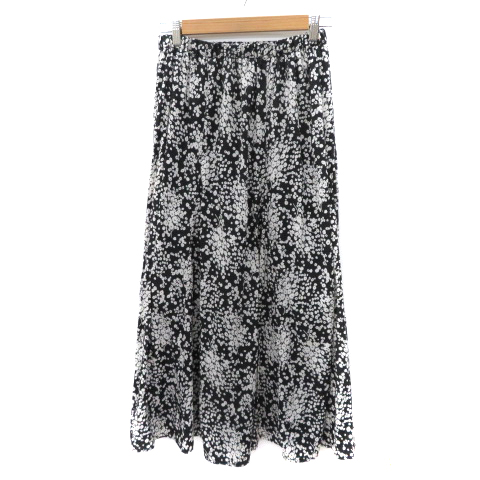 【中古】アーバンリサーチ フレアスカート ギャザースカート ロング丈 花柄 F 黒 ブラック オフホワイト レディース