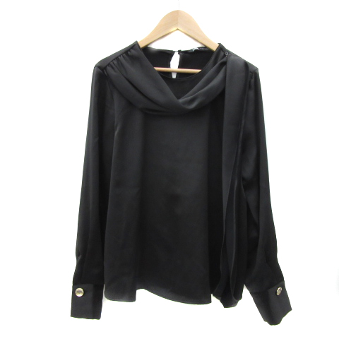 【中古】ザラ ZARA ブラウス カットソー 長袖 ボウタイ サテン XS 黒 ブラック /YS2 レディース