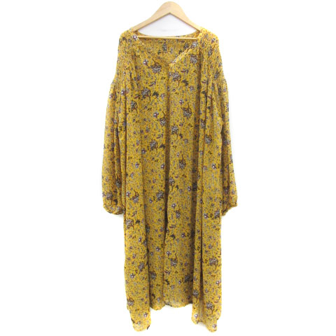 【中古】カスタネ Kastane ワンピース ロング丈 長袖 総柄 F イエロー 黄色 /YM46 レディース