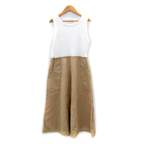 【中古】ザラ ZARA ワンピース マキシ丈 ノースリーブ ラウンドネック 切替 無地 L ホワイト ベージュ レディース