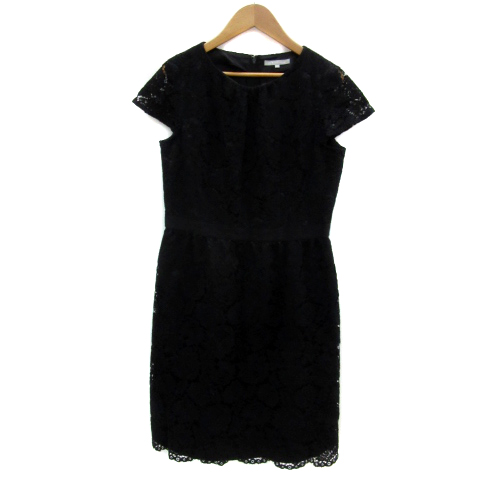 【中古】23区 オンワード樫山 ワンピース ひざ丈 半袖 ラウンドネック 総柄 総レース 38 M 黒 ブラック レディース