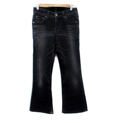 【中古】サムシング デニムパンツ ジーンズ フレアパンツ アンクル丈 ウォッシュ加工 28×30 L 黒 ブラック