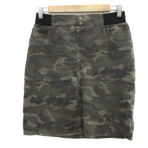 【中古】ラフィア Raffia タイトスカート ひざ丈 迷彩柄 カモフラ柄 38 M マルチカラー カーキ /YS7 レディース