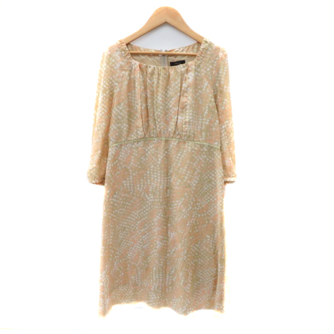 【中古】セブンアイディコンセプト ワンピース ひざ丈 七分袖 総柄 38 M マルチカラー ベージュ /YK39 レディース