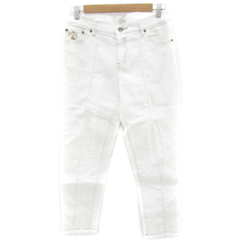【中古】チチカカ titicaca デニムパンツ ジーンズ テーパードパンツ アンクル丈 刺繍 L ホワイト 白 レディース