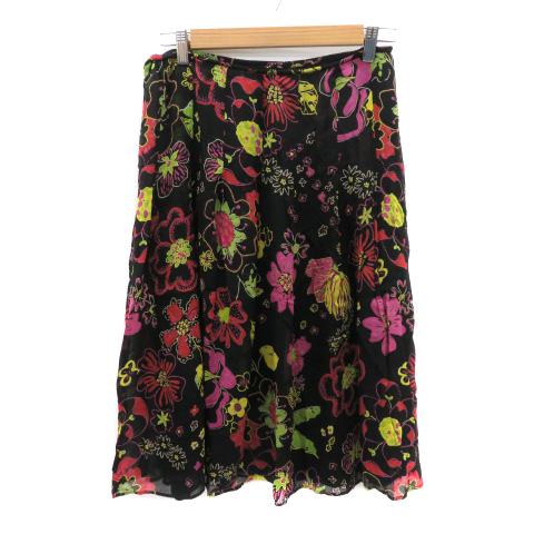 【中古】クリッツィア フレアスカート ギャザースカート ミモレ丈 花柄 42 XL 大きいサイズ 黒 ブラック レディース
