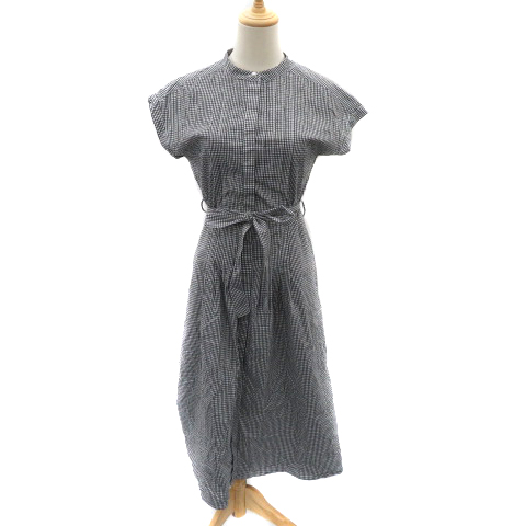 【中古】クチュールブローチ シャツワンピース ロング丈 半袖 バンドカラー ギンガムチェック柄 38 M 黒 レディース