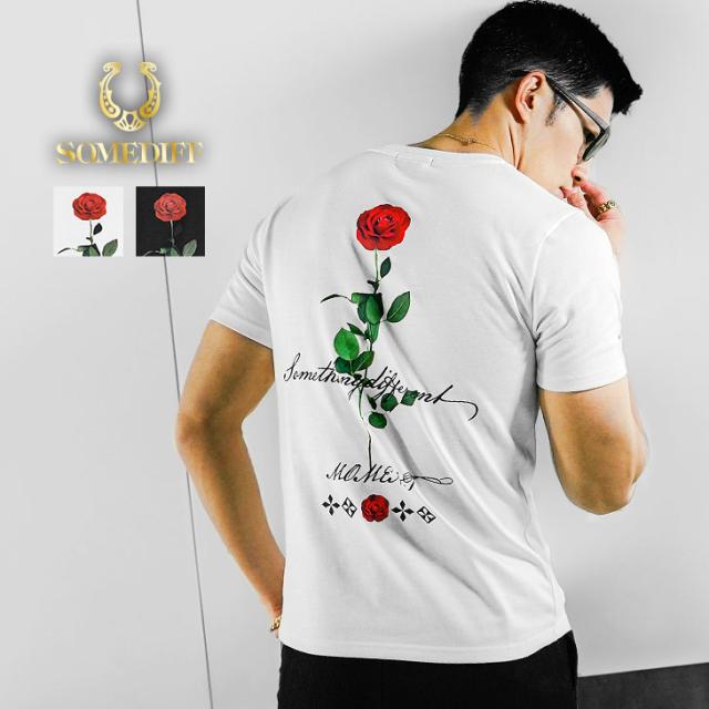 SOMEDIFF(サムディフ)『バラTシャツ』【箔プリントTシャツ】■Design/デザインバックに配置した大きなバラプリントが、インパクトを生むSOMEDIFFのクルーネックTシャツ。柔らかく、ややふんわりとした質感の生地を用い、心地の良い着用感を実現し、汗ばむ季節も涼しげな顔で過ごせる一枚に。バラプリントが魅せる上品さは、オトナには欠かせないスマートさをプラスするアクセントになる。程よく体にフィットするレギュラーなサイジングが無駄のないスマートな佇まいを演出。インパクトと品を両立したハイブリッドな一枚。