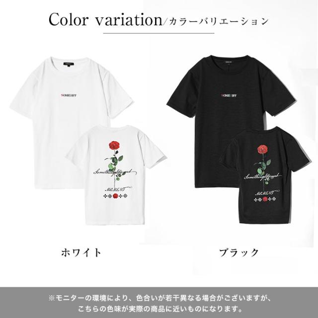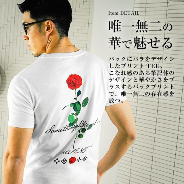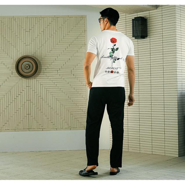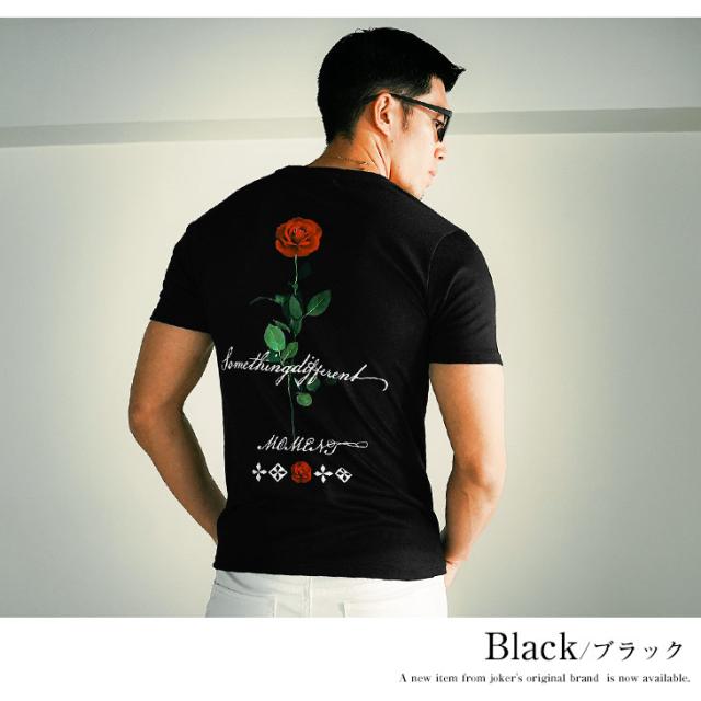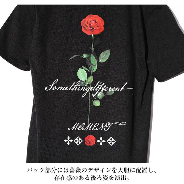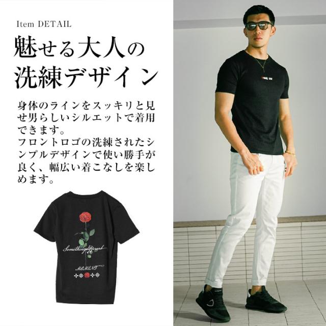クルーネック Tシャツ メンズ 半袖 半袖Tシャツ ブランド Tシャツ バラ 花柄 Tシャツ ストレッチ 生地 ロゴT カットソー 半袖 白Tシャツ 黒Tシャツ ホワイト ブラック タイト スリム 細身 薄手 夏 夏服 夏物 春夏 メンズファッション リゾート お兄系 オラオラ系 ちょいワル