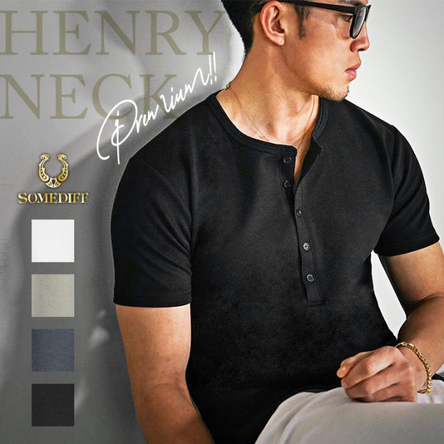 SOMEDIFF(サムディフ)『ヘンリーネック半袖プレミアムT』【ヘンリーネック半袖プレミアムT】■Design/デザイン上質な肉厚素材を使用したプレミアム感のある半袖Tシャツからヘンリーネックタイプが新登場!少し大人な印象をもたらすヘンリーネックは上品なスタイルにピッタリな1枚。柔らかく肉厚な生地感で肌あたりの良い極上の着心地を楽しめる。体のラインに沿うシルエットでありながらストレッチ性があるため、ストレス感なく男らしいシルエットを楽しめる。こだわり抜かれた、オトナのための至極の逸品。